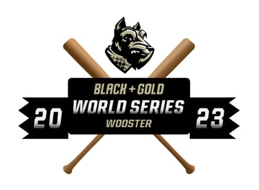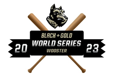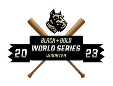 This vector emblem was designed to anchor the branding for the Fall 2023 "Black + Gold World Series" in Wooster. The logo utilizes aggressive, stylized illustration for the mascot and a clear typography hierarchy within a dynamic central banner, all balanced by a classic crossed-bat motif to provide a feeling of athletic heritage.