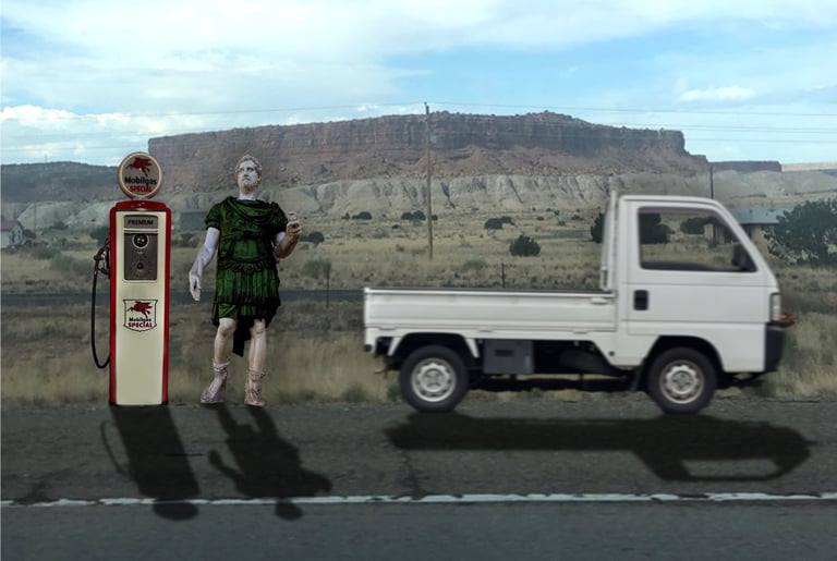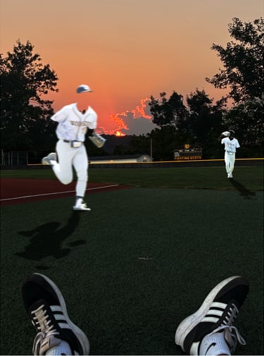 This conceptual piece uses a first-person perspective to explore a surreal narrative where the setting sun acts as a catalyst for the physical world's dissolution. By digitally manipulating original photography, I created a "disappearing" effect where the baseball field and its players begin to fade into the encroaching shadows, leaving only the observer's grounded perspective as the environment transitions from reality into a dreamlike void.